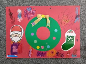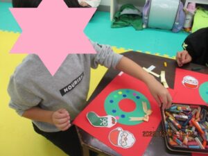 今月の制作は ぺたっとクリスマスリース🎄